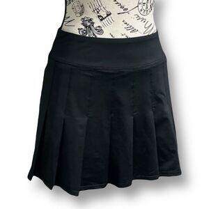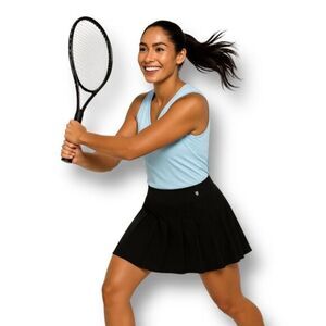 * A flutter-hem pleated skort in sleek black, blending performance and elegance for court or casual wear.