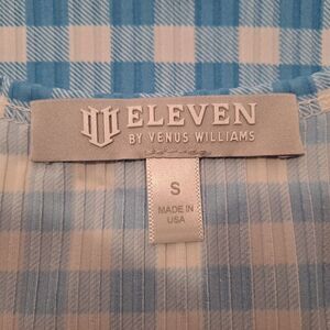 Size Small Gingham Square Neck Tank Top. Lightweight. Would go perfect with the white Eleven Tennis Skorts I have listed. Pit to pit 16" unstretched. total length from shoulder to bottom hem is 22"