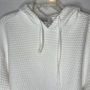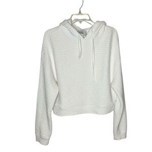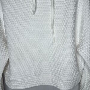 EleVen by Venus Williams x K-Swiss Quilted White Palms Crop Hoodie. Size Large. Chic and comfortable white hoodie. Features a textured design. Ideal for layering and casual wear. Very good used condition. Has a very light stain on sleeve as shown in picture. Hard to see when wearing.