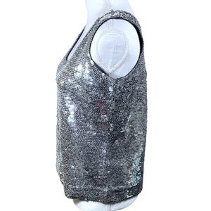 Eleanor P Brenner Sequin Tank Sparkling Scoop Neck Top Sleeveless Women Silver M