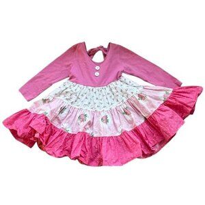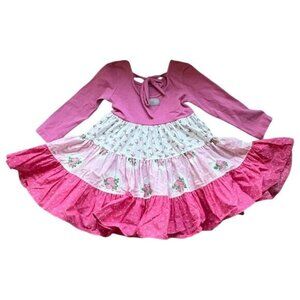 Eleanor Rose Britney Dress Girls Size 3 - 4 Cotton Pink Rose Floral Tiered