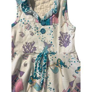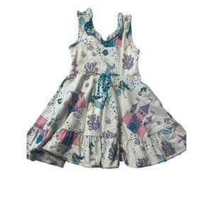 The Eleanor Rose Everly Dress is perfect for girls aged 3-4. This white, cotton dress features a mermaid castle design. It's in excellent, gently used condition with no flaws. Ideal for twins, two are available from a smoke-free home.