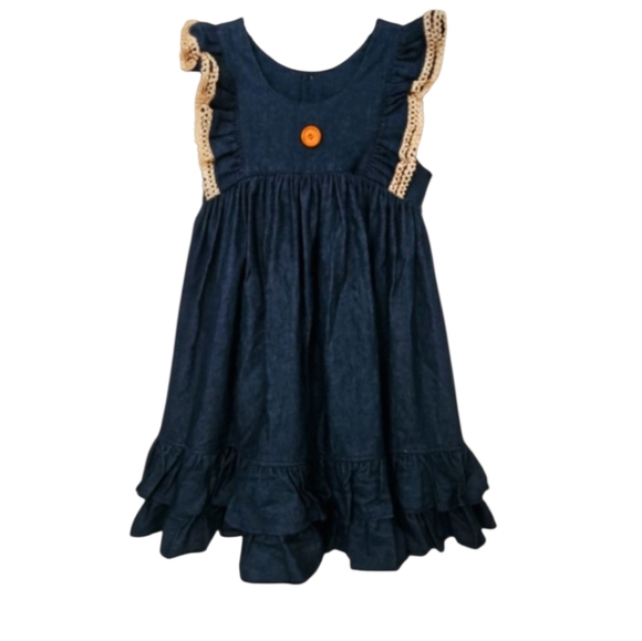 Eleanor Rose Lacey Dress Denim 100% Cotton Tiered Ruffle Hem