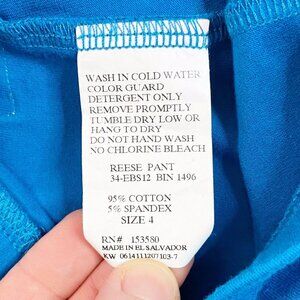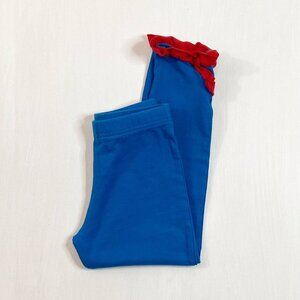 Eleanor Rose stretch cotton Reese pant in blue with red ruffle detail from the 2019 Schoolyard Fun collection.