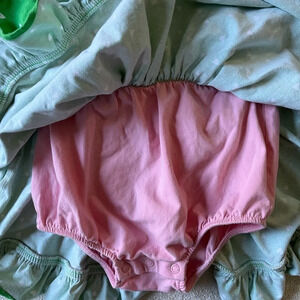 Beautiful quality dress. Onesie with snaps built-in. Size 18 months. Some blue marks around the cuffs (see pics)