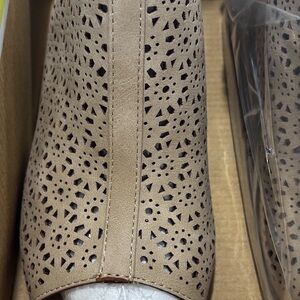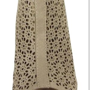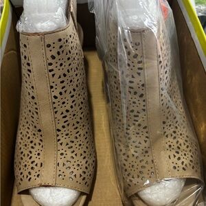 Elect Caged Geometric Laser Cut Out Peep Toe Slingback Chunky Stacked Heel Ankle Bootie