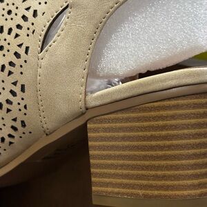 Elect Caged Geometric Laser Cut Out Peep Toe Slingback Chunky Stacked Heel