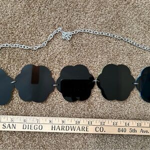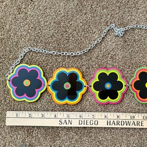 Brand New and never worn. I got this mystery shopping and never used it. It’s hard acrylic and very bright and pretty. Let me know if you have questions. It does have the little black flower at the end that you see in the product photo from the website. I just forgot to take a pic of it.