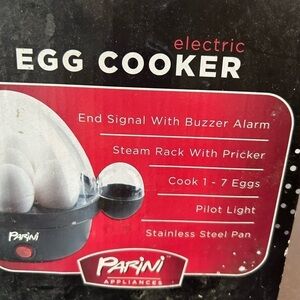New Electric egg cooker, Stainless Steel Pan, Steam Rack with Pricker, Cooks 1-7 Eggs, End Signal with buzzer alarm, Pilot Light