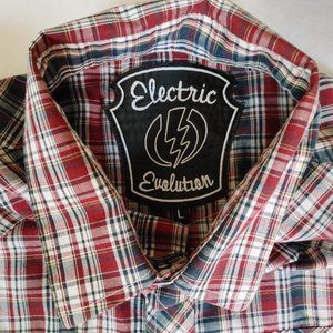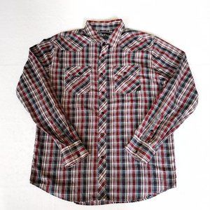 Electric Evolution Men's Red and Blue Plaid Button Up Shirt Large western