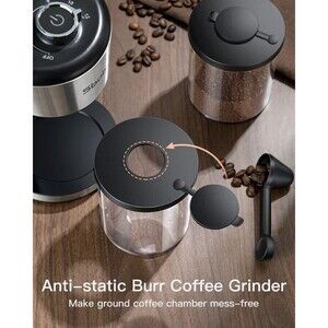 The removable bean hopper of the coffee grinder holds 140g of coffee beans,