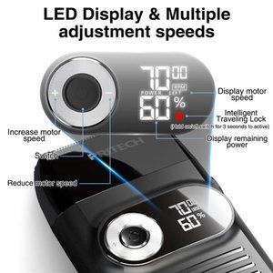 🧿【3-ADJUSTABLE SPEED WITH LED DISPLAY】: The LED digital display visually displays the speed and remaining power. You can control the speed of shaving, adjust it according to the thickness and length of your hair or beard during the cutting.Travel lock (press and hold the POWER button for three seconds)