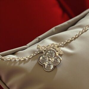 New in package. Simple and elegant, this delicate chain necklace features a sparkling clover-shaped pendant with crystal accents. Perfect for layering or wearing on its own for a subtle touch of shine.