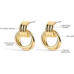 Crafted with care, these 14k gold earrings for women shine with a warm glow that stands out in any setting. Layered plating and a protective coating help resist tarnish, so your earrings stay beautiful and ready to wear day after day.