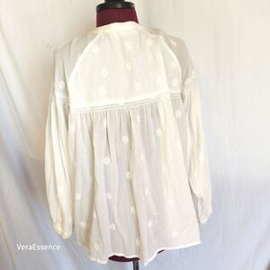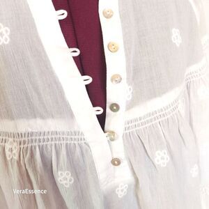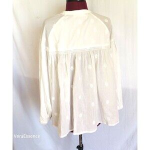 Electric & Rose Sasha Top Tunic Sheer Cotton Shirt in Cloud White Embroidered M