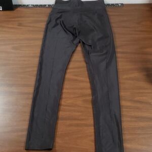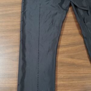 Great slick black leggings with a laser cut dot design in the front & back. The front has a V & a Y kind of design on your thighs & calves. The back has a line that runs down the back of your leg like a sexy pair of stockings.