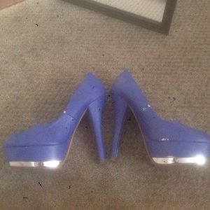 Electric blue pumps with silver bottom