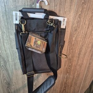 Explore the versatile tool pouch in sleek black and tan. Ideal for professionals on the go, offering ample space and durability and tool storage