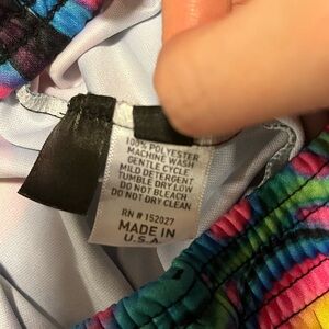 These athletic shorts feature a vibrant psychedelic pattern in blue, green and pink, perfect for making a statement during your workout for for going to a festival. Made from lightweight fabric. The elasticized waistband with strings ensures a snug fit, adding to their practicality and appeal.