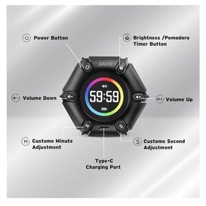 Pomodoro Timer: This timer includes built-in Pomodoro timing. Simply press the tomato button to start the Pomodoro method: 25 minutes of focused work followed by a 5-minute break, repeating this cycle four times. This helps you use your time more efficiently. It is versatile and suitable for various activities, including work, meetings, studying, reading, exercising, cooking, and more. You can use this timer in virtually any situation!