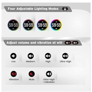 Customizable Sound and Brightness: Our timer offers four light levels, making it suitable for both dim nights and bright days. It also has three modes: silent, vibration, and sound. The sound volume is adjustable, allowing everyone to find the most suitable mode for their needs.