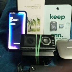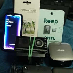 Phones/phone projector/ 64 GB memory cards/screen protectors/ portable hotspot/Sirius radio/Dash cam