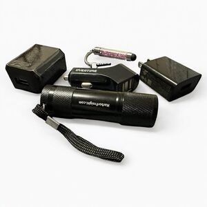 Electronics Gadget Lot – Flashlight, Dual USB Car & Wall Chargers + Stylus Keychain
