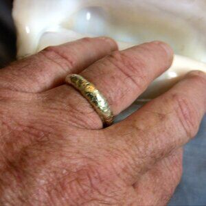 For sale a beautiful ring in a greenish tone achieved by using the ancient electrum alloy.