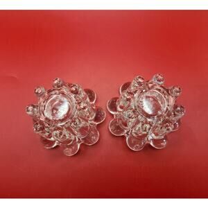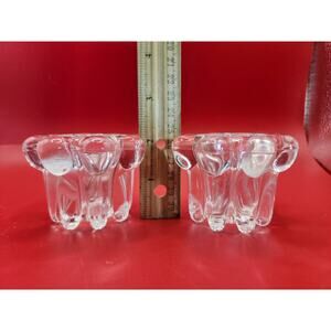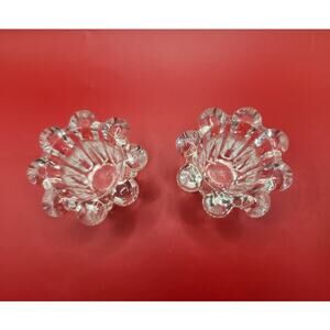 Elegance Crystal Candle Holders Set of Two, 2-Inch Scalloped Flowers Vtg in Box