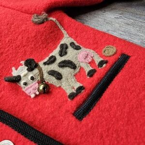 Elegance Seiler Red Jacket Cardigan Vintage Wool Cow Graphic