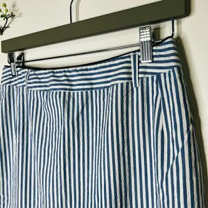 Elegance Paris Blue White Stripe Seersucker Pencil Straight Skirt Nautical