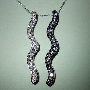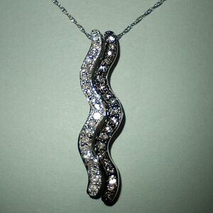 This stunning 10k white gold and diamonds wave pendant necklace adds a touch of elegance to any outfit. The intricate design sparkles beautifully, making it perfect for any occasion.