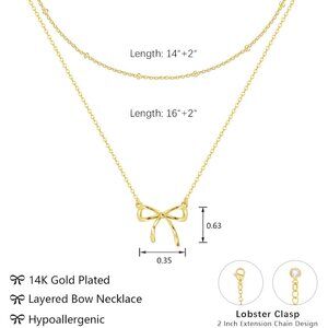 Features: Slim bead chain with a chic bow pendant, made from hypoallergenic brass with a luxurious 14K gold plating. The necklaces have a lobster clasp for easy wear, and the adjustable length makes them perfect for layering or wearing solo.