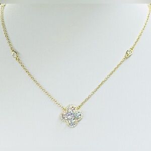 Elegant 14K Gold Flower and Crystal Pendant Necklace
