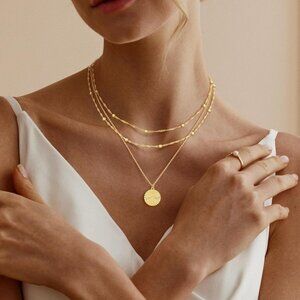 Features: A sophisticated multi-layer necklace featuring delicately beaded chains, a charming pearl disc, and a subtle heart charm. Made from high-quality brass with a radiant 14k gold plating, this piece offers a smooth feel and perfect everyday elegance. The layered design adds depth and style, making it ideal for dressing up or down.