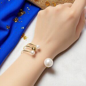 Gold pearl cuff bracelet | minimalist open bangle | faux pearl bracelet | pearl jewelry gift set | adjustable gold bracelet | elegant gold cuff | pearl stacking bracelet | hypoallergenic stainless steel jewelry | gold bracelet for women | white pearl bangle | timeless pearl cuff | fashion accessories for her | statement bracelet with pearls | boho chic gold jewelry | glam evening jewelry | bridal jewelry cuff | everyday elegant bracelet | delicate gold bangle | layered jewelry style | trendy affordable luxury | modern pearl cuff for gifting | fashion bracelet