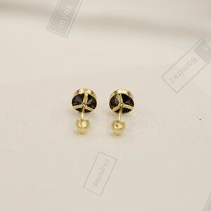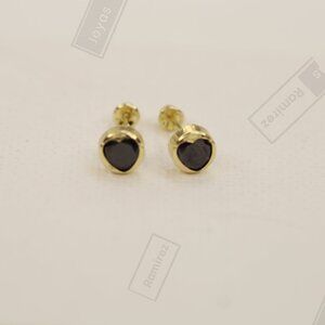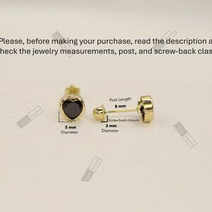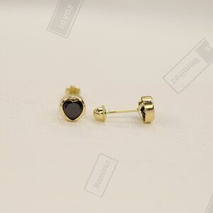 Elegant 14K Solid Gold Heart Earrings with Black Zirconia • 5mm Round Silhouette