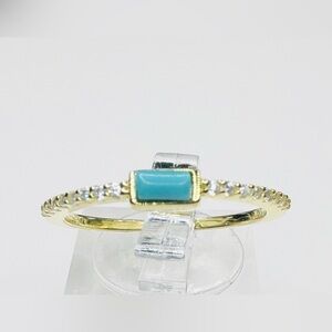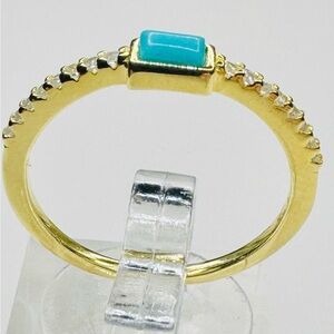 Elegant 14KGold Sterling Silver and Turquoise Ring and Simulated Diamonds