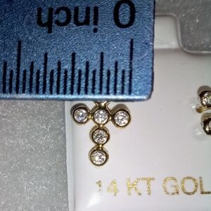 Made with real 14k solid yellow gold. There are no markings since the stem is quite thin. The stones are high quality cz and have a nice sparkle.