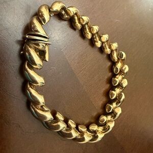 This stunning made in Italy 14k over 925 silver bracelet adds a touch of elegance to any outfit. Perfect for any occasion. In good used condition, approximately 25 g