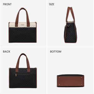 Features: Chic quilted tote with a rectangular silhouette, crafted from durable polyester, cotton, and rayon for a sophisticated look. It has 12 cleverly designed pockets, including a secure anti-theft back pocket and a matching clutch for your essentials. The padded handle and shoulder strap make it comfortable to carry all day, whether you're heading to the office, shopping, or traveling.