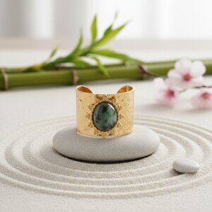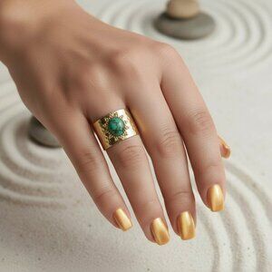 Embrace timeless elegance with this 18K gold plated wide band ring, designed to captivate with its genuine moss agate stone centerpiece and hammered texture. Perfect for any outfit, this ring is adjustable for sizes 7-8 and comes in premium gift-ready packaging, making it a luxurious addition to your jewelry collection or a thoughtful gift choice! 🎁 Key Features: - 🌟 18K Gold Plated Stainless Steel for lasting shine - πŸ’ Adjustable band, fits ring sizes 7-8 - 🌿 Genuine moss agate stone centerpiece - πŸ“ Measures 0.6"H x 0.76"W - πŸ”¨ Unique hammered texture for a chic look - 🎁 Includes a gift box and premium packaging 🌟Fast Shipping πŸ“¦ | 5-Star Rated ⭐ | Professional Seller ✨ 🌷Discover more unique jewelry πŸ’ŽπŸ“Ώ in my boutique! πŸ›οΈDon't forget to bundle items and saveπŸ’°! 18K gold plated ring, adjustable ring, natural stone ring, wide band ring, hammered finish ring, boho chic jewelry, trendy gold ring, statement ring, gift for her, unique gold ring, premium jewelry, gemstone ring, natural gemstone ring, luxury jewelry, gold statement ring, ring sizes 7-8, poshmark jewelry, boho ring, modern gold ring, elegant ring, fashionable ring, handcrafted jewelry, natural stone jewelry, chic gold ring, women's gold ring, adjustable band ring, high-quality ring, bohemian style ring, stylish ring, gold ring with stone, gift-ready jewelry, 18K gold plated moss agate ring, moss agate jewelry, adjustable moss agate ring, natural stone moss agate, boho chic moss agate ring, fall