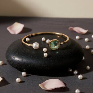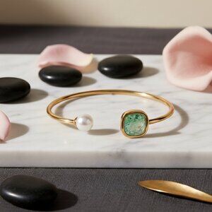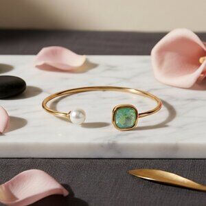 18K gold plated bracelet, minimalist cuff bracelet, stainless steel jewelry, aquamarine crystal bracelet, faux pearl bracelet, dainty gold bangle, trendy open cuff, hypoallergenic jewelry, tarnish-resistant bracelet, elegant gold bracelet, stackable bracelet, gold and pearl bracelet, luxury fashion jewelry, gift for her, adjustable bangle, timeless jewelry, modern minimalist bracelet, spring jewelry trends, summer jewelry, bridal jewelry, wedding guest accessories, anniversary gift, Mother's Day gift, birthday gift, holiday jewelry, trending jewelry 2025, fashion-forward accessories, delicate jewelry, statement cuff bracelet, womenβs gold jewelry, stunning