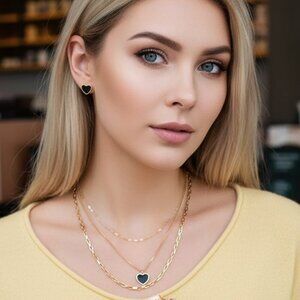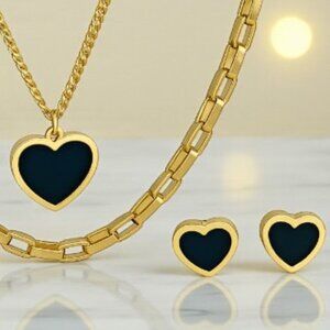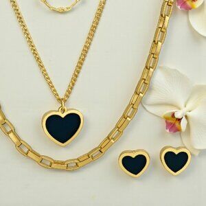 Make a statement with this stunning 3-piece jewelry set, featuring a triple-layered necklace and matching heart stud earrings. Crafted from 18K gold plated stainless steel, this set is designed for long-lasting shine and tarnish resistance, making it the perfect gift or everyday accessory! 💖