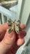 The top of the wings is plated in a white gold and the band and butterfly body are plated in 18k yellow gold. The ring is stamped 18KT GE with an “A” in a circle maker’s mark. Approximately size 9.