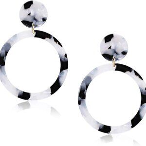 Features: Lightweight, trendy hoop earrings with a marbled tortoise shell design. Dangle style with a stud and hoop combo that adds a touch of elegance and charm. Perfect for dressing up any outfit and comfortable enough for all-day wear.