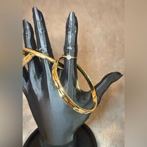 •(3) Gold Tone Bangles- (2) Hammered Design & (1) Solid