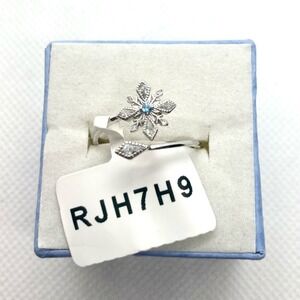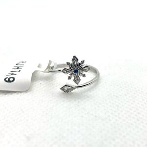 Elegant 925 NWT Sterling Silver Snowflake Ring with Blue Gem - Adjustable Size