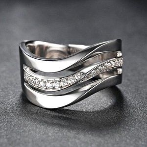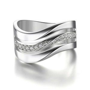 Elegant 925 Silver Wavy Diamond Band Sz 6-10