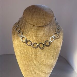 This elegant silver chain necklace adds a touch of sophistication to any outfit. Perfect for any occasion.